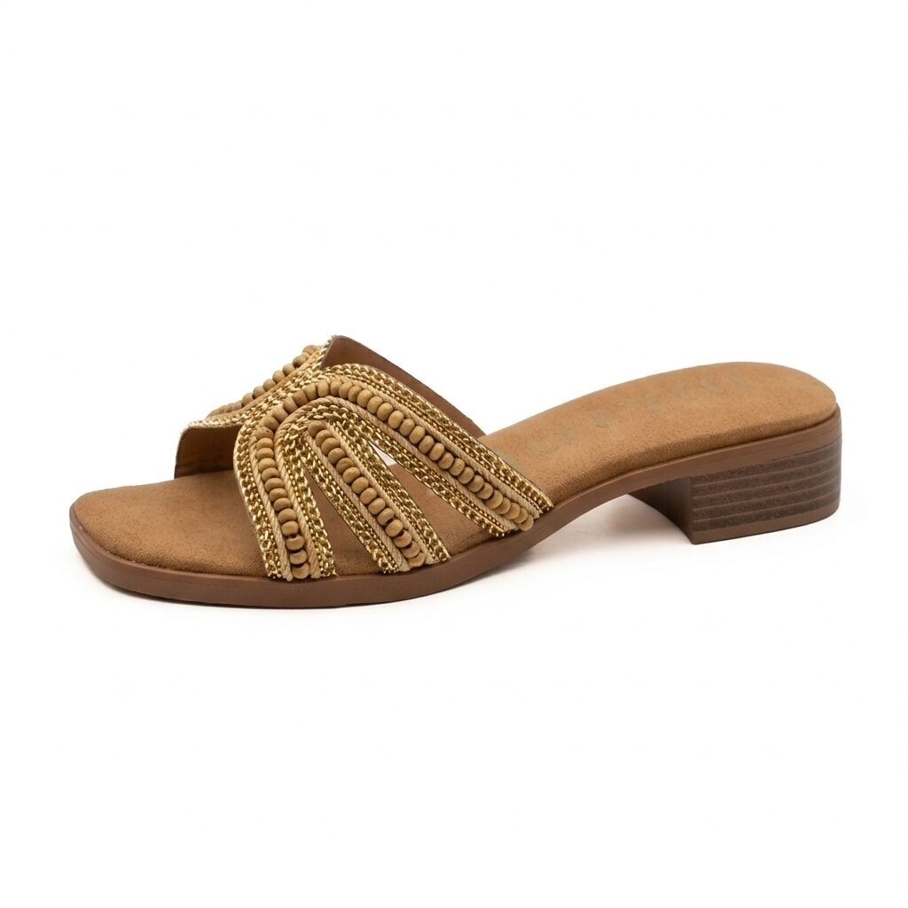 • Ethnic Bead & Chain Detail – Ο συνδυασμός από χάντρες και χρυσά στοιχεία χαρίζει μοναδικότητα, συνεπώς το πέδιλο ξεχωρίζει.